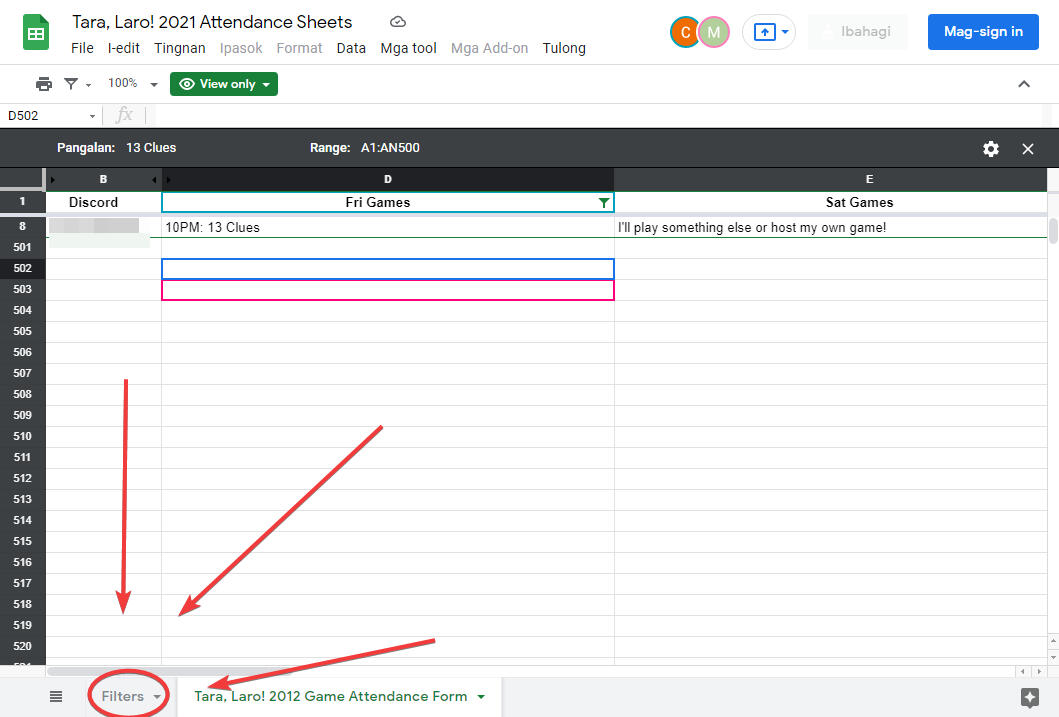 1. Go to the sign up sheet. Go to the "Filters" tab.
